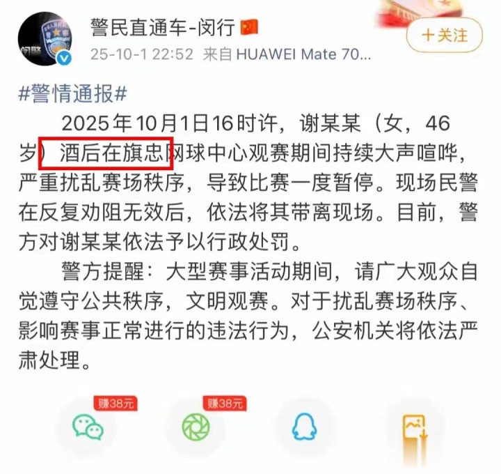 最近上海网球公开赛不是挺热闹的嘛,可是出了一件事情,一个46岁的谢姓女子,网传是做珠宝生意的,还是嫁了个瑞典老头,竟然在赛场上闹事,简直是太丢人了。